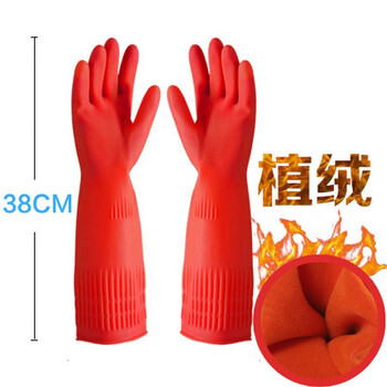 嘉柔美长乳胶洗碗手套牛筋加厚加长橡胶手套38cm红色特厚加绒保暖型S号