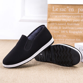 通云达秋冬老北京布鞋加绒加厚二棉鞋男牛筋底工作开车保暖全黑色一脚蹬