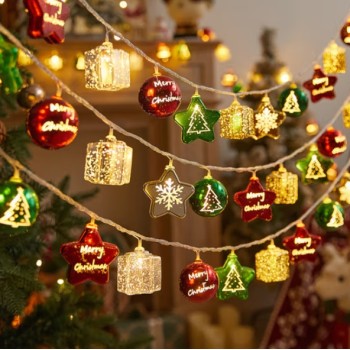 圣诞节装饰品彩灯串灯闪灯圣诞树挂件橱窗创意场景布置 圣诞镀金礼包款 1.5米10灯【电池款】送电池