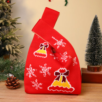 圣诞节针织礼物袋 手提斜挎平安夜平安果礼品袋 礼物袋 绿底铃铛 1