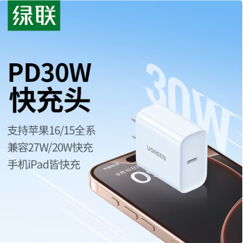 绿联苹果充电器PD30W快充头兼容PD27W/20W快充适用
