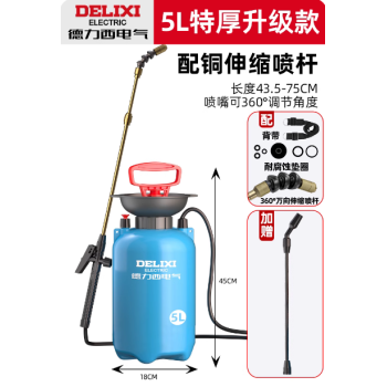 德力西电气气压式喷水壶浇花家用5L特厚款喷壶【送伸缩铜杆+肩带+原装配件】