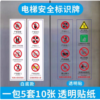 电梯安全标识贴警示标志标识牌防扒门标识轿厢安全标识警示牌乘梯须知贴纸警示贴禁止倚靠提示电梯门安全标识
