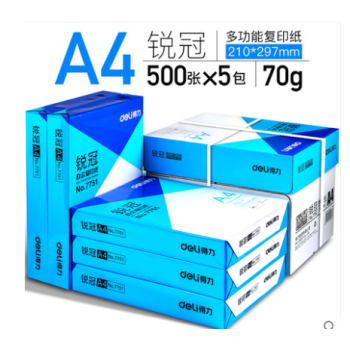 得力a4纸整箱打印复印纸白纸70g打印纸a4办公用纸a4整箱5包装2500张一箱批发办公用品