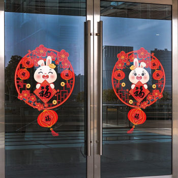 2023新年福字门贴玻璃贴纸春节元旦装饰过年布置灯笼窗贴兔年橱窗静电贴