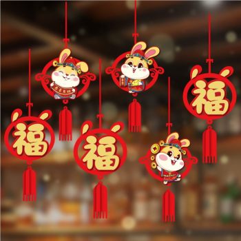 2023新年兔年福字舞狮装饰生肖挂饰店内布置吊饰春节元旦装扮吊坠