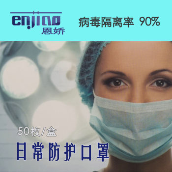 恩娇(enjiao)无纺布一次性日常防护口罩防飞沫防菌 50只装/盒 蓝色 175*95MM 50只/盒 1
