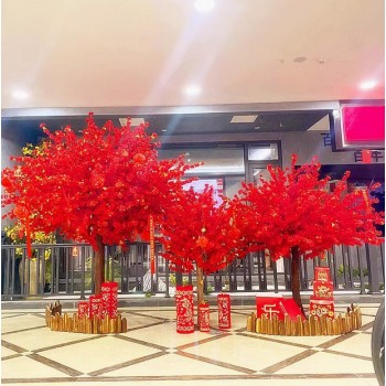 仿真红色桃花树大型室内外装饰 1.8米高x1米宽【送红包挂件】