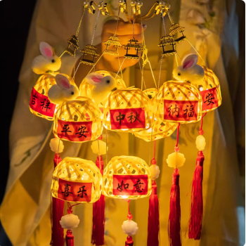 竹编手工手提发光国风小灯笼 手提灯笼 【福字兔-豪华版】竹编灯笼 1