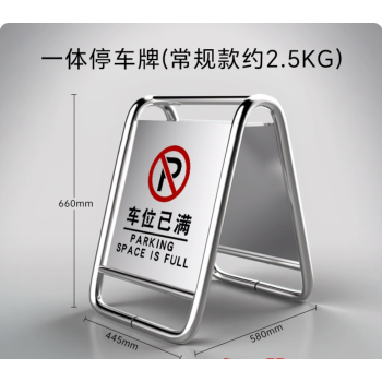 不锈钢禁止停车警示牌请勿泊车告示牌私家专用车位提示牌A字立牌 不锈钢告示牌 一体常规车位已满【室内款】 1张